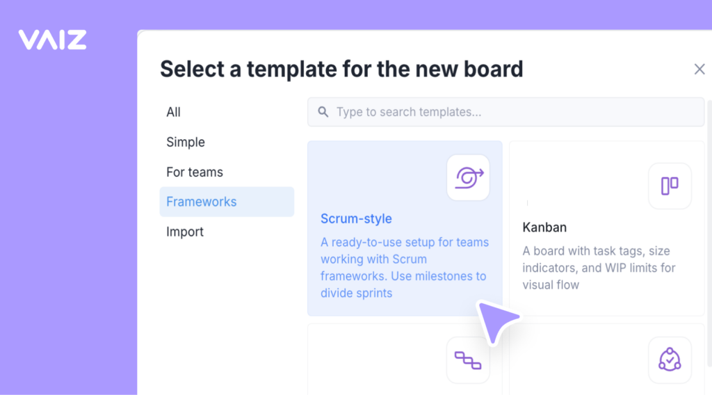At Vaiz, we built our template library specifically around these two audiences. The templates cover the full range of project types: Scrum and Kanban for dev teams, OKR tracking and RACI matrices for strategy and ops, RAID logs for risk-heavy projects, and team-specific setups for marketing, recruitment, and production teams.