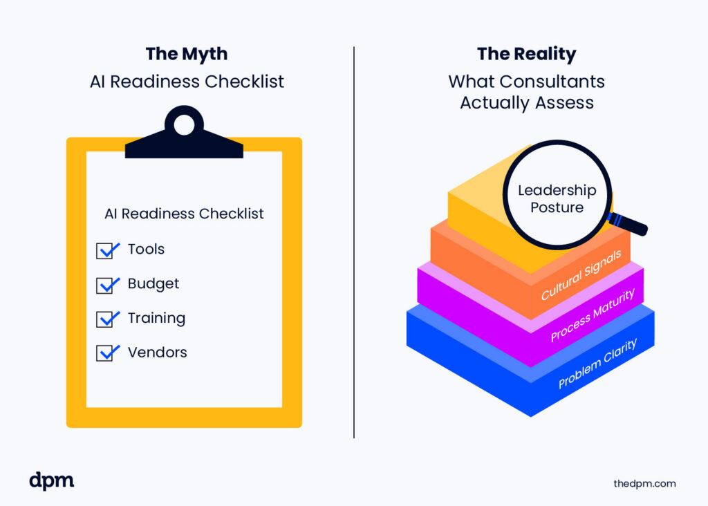 Consultants assess readiness by looking for leadership that models curiosity instead of fear, cultures that support learning instead of perfection, and operations that are documented, owned, and understood. They listen for clarity around what problems teams are trying to solve and watch for discipline in how work moves through the organization.