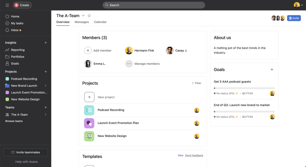 Asana enables project management through projects, tasks, and timelines that create structure around teamwork. Project managers use projects as containers for related work, breaking them into tasks with assignees, due dates, and dependencies. The platform provides multiple views (list, board, timeline, calendar) so teams can visualize work in the format that best suits them. Custom fields, task dependencies, milestones, and status updates help managers track progress and communicate with stakeholders without leaving the platform.